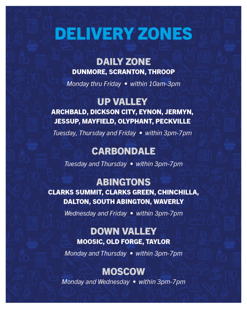 DePietro’s Pharmacy is happy to offer home delivery to most areas of Lackawanna County. Sometimes a trip to the pharmacy is the biggest hurdle for a customer. Our delivery drivers deliver more than just medications. They deliver individualized service with a smile right to your doorstep.